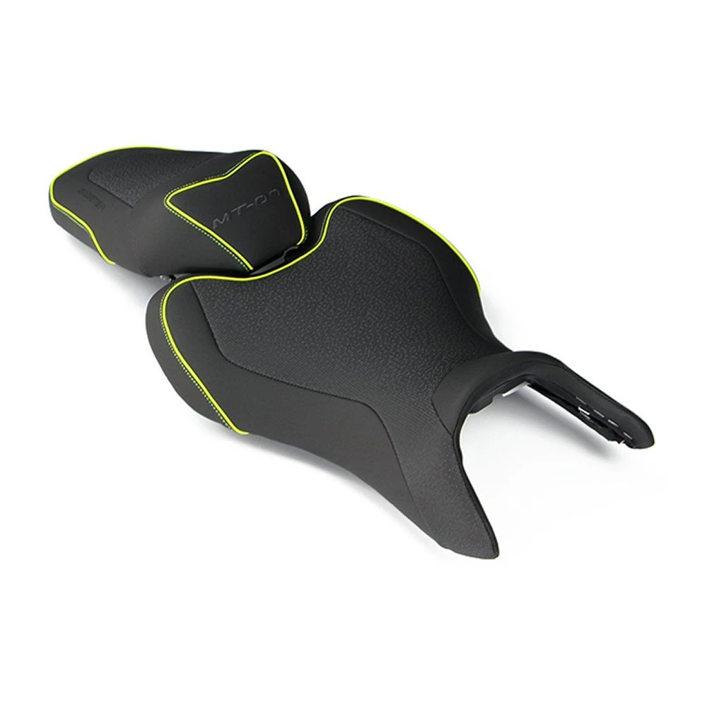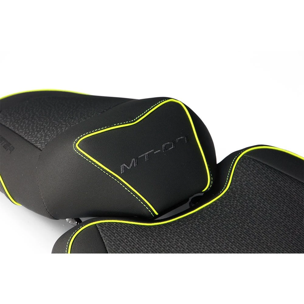 De zadels die wij op voorraad hebben, hebben meestal een neutrale kleur zoals zwart. In andere gevallen kunnen ze een accent kleur hebben die overeenkomt met de lak van de motorfiets waarvoor het zadel geschikt is. Bijvoorbeeld fluorescerend geel dat past bij de gele banden van een Yamaha MT-07, of het levendige groen dat je op veel Kawasaki’s vindt.