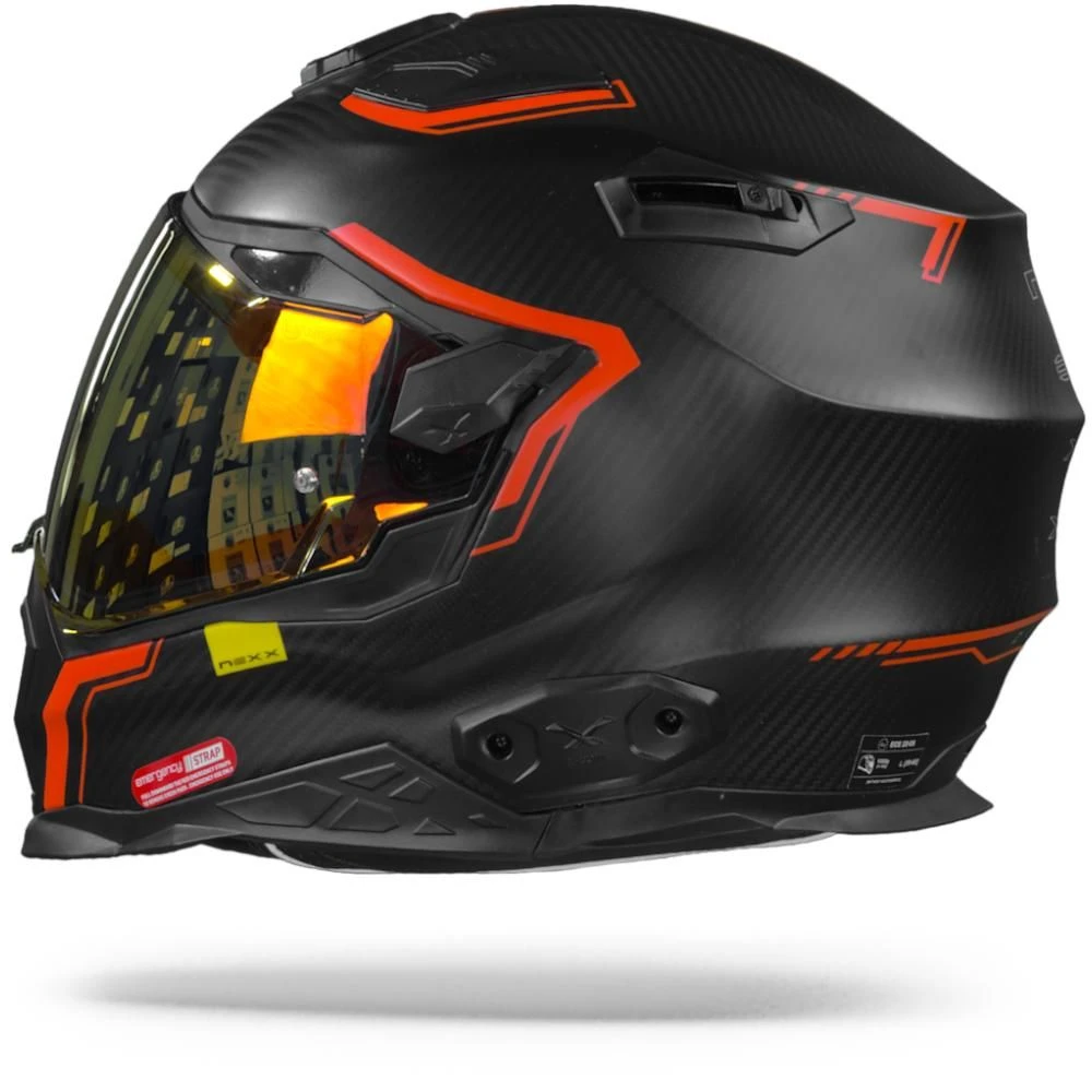 De belangrijkste taak van een helm is het bieden van bescherming. De van carbon gemaakte zwart X.WST2 biedt het voordeel van een zeer lichte constructie en het verdeelt de energie uitstekend bij impact. Bovendien ziet het er stoer uit! De kinband is een belangrijk onderdeel van de helm bij een botsing en het is ook het onderdeel waar je het meest mee te maken hebt bij het op- en afzetten van de helm. De X.WST2 is voorzien van een Dubbel-D sluiting. Dit is waarschijnlijk de oudste stijl sluiting en heeft het eenvoudigste ontwerp. Toch wordt hij tot op heden als de veiligste beschouwd en zijn Dubbel-D kinsluitingen de enige die op het circuit zijn toegestaan. Uiteraard zijn al onze helmen gecertificeerd en legaal voor gebruik op de Europese wegen, aangezien deze helm ECE 22.05 is gekeurd.