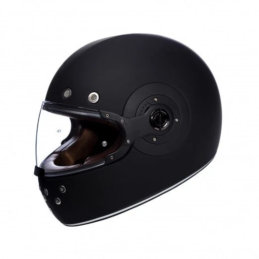 De belangrijkste taak van een helm is het bieden van bescherming. De van polycarbonaat gemaakte zwart Retro biedt uitstekende bescherming en prestaties zonder te diep in de buidel te hoeven tasten. De kinband is een belangrijk onderdeel van de helm bij een botsing en het is ook het onderdeel waar je het meest mee te maken hebt bij het op- en afzetten van de helm. De Retro is voorzien van een Dubbel-D sluiting. Dit is waarschijnlijk de oudste stijl sluiting en heeft het eenvoudigste ontwerp. Toch wordt hij tot op heden als de veiligste beschouwd en zijn Dubbel-D kinsluitingen de enige die op het circuit zijn toegestaan. Uiteraard zijn al onze helmen gecertificeerd en legaal voor gebruik op de Europese wegen, aangezien deze helm ECE 22.05 is gekeurd.